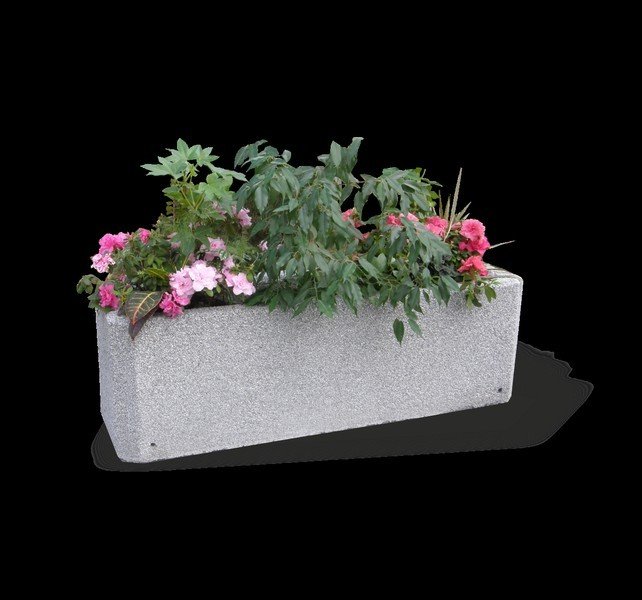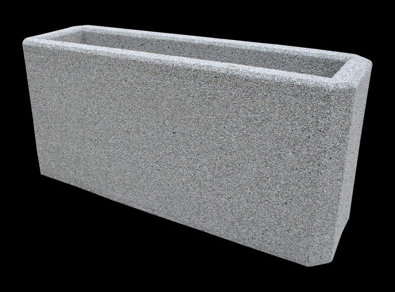 Donica widoczna na zdjęciu została wykonana w technologii betonu płukanego z fakturą zewnętrzną grysu granitowego.